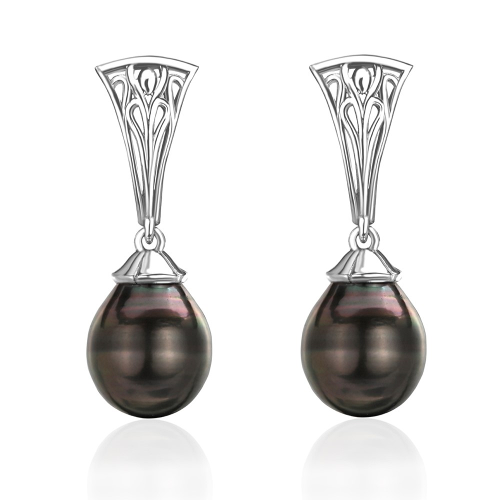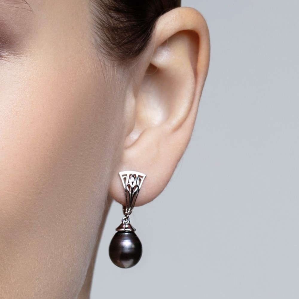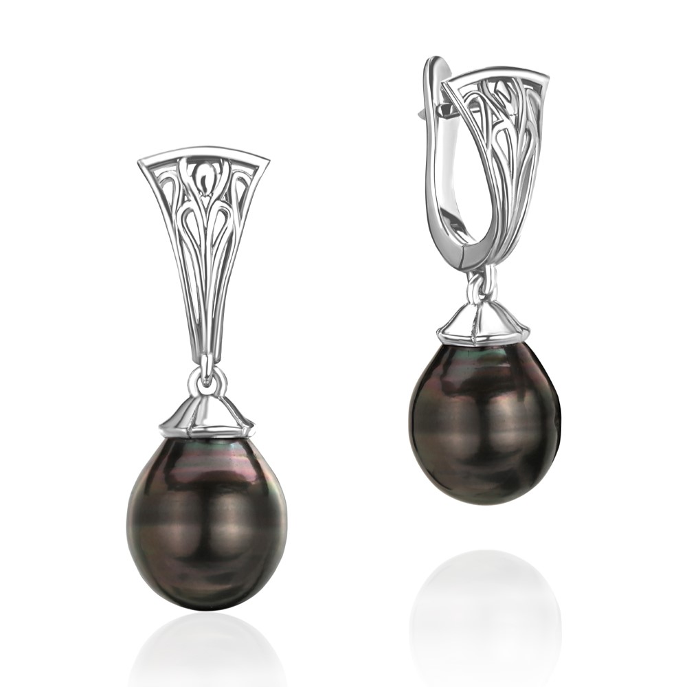 Элегантные ажурные серебряные серьги с морским культивированным жемчугом Таити. Пара жемчужин каплевидной формы темно-серого до черного цвета с сильным блеском. На поверхности жемчуга присутствуют небольшие ростовые природные особенности - ямки, полоски. Диаметр жемчужин - 10 мм. Происхождение жемчуга - Французская Полинезия. Серебро 925 пробы. Удобный английский замок. Вес украшения - 6,4 г. Масса украшения и вес вставок в разных экземплярах могут варьироваться в незначительных пределах.