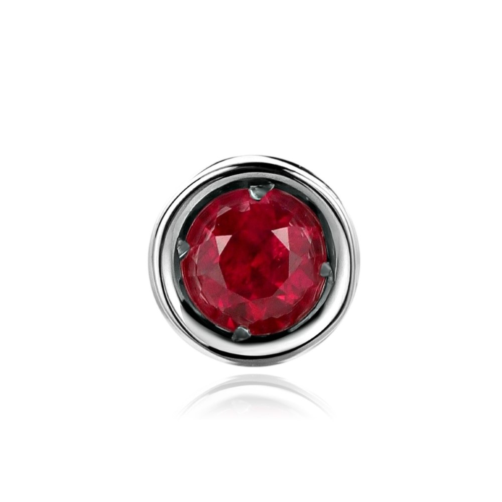 Одиночная серьга с ярко-красным натуральным рубином. Специально разработанная закрепка камня в этих серьгах усиливает блеск и подчеркивает ярко-красный цвет рубина. Масса камня - около 0,10 карата, характеристики 2а/2Б. Рубин природный термообработанный. Диаметр камня приблизительно 2,7 мм, диаметр пусеты- около 3,5 мм. Белое золото 585 пробы. Вес серьги - 0,6 г. Надежный винтовой замок. В комплекте: серьга (одна), бирка, фирменная упаковка.